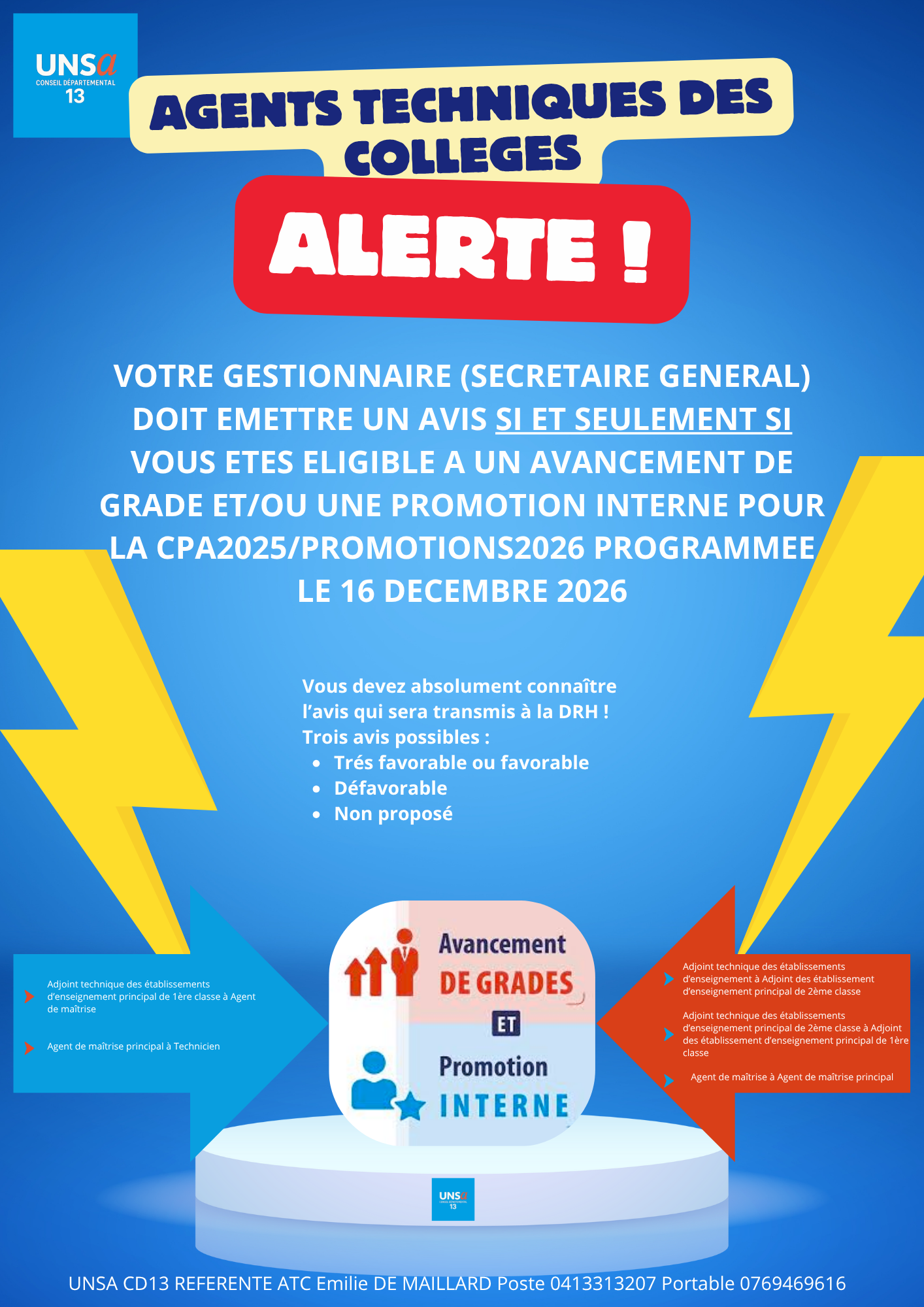 AGENTS TECHNIQUES DES COLLEGES / ALERTE / DEMANDEZ VOTRE AVIS POUR LA CPA2025/PROMOTIONS2026