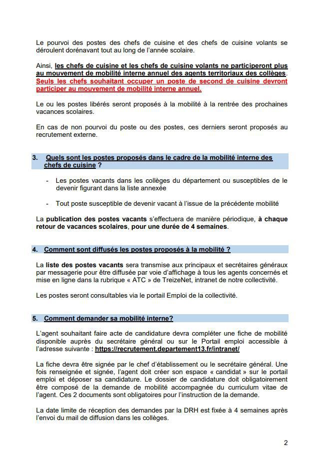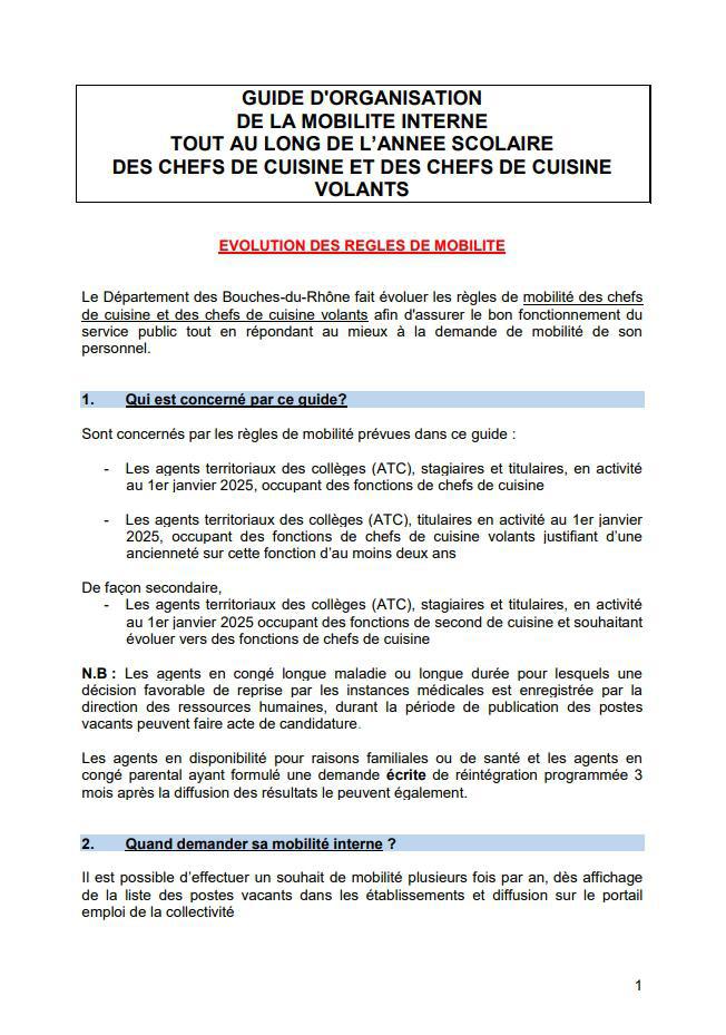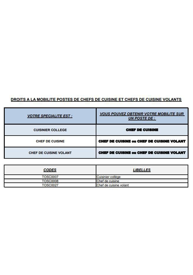Dans le cadre de la mobilité des chefs de cuisine et chefs cuisiner volants, vous trouverez ci-joint les documents en PDF et ci-dessous le corps du texte adressé aux secrétaires généraux et principaux ce jour.