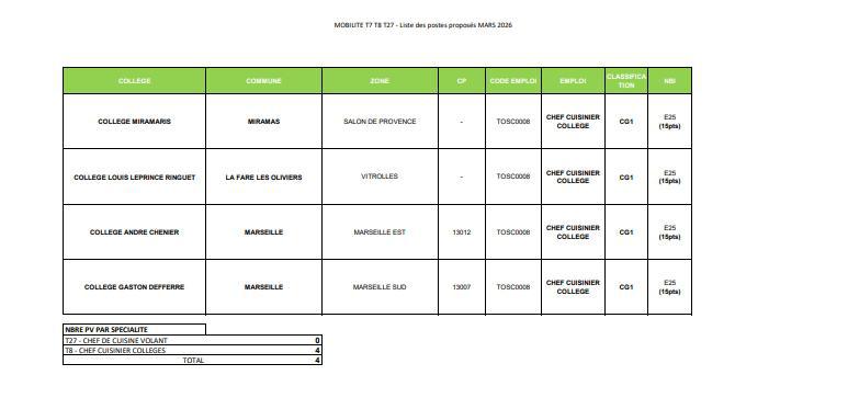 Objet : MOBILITE MARS 2026- CHEFS DE CUISINE ET CHEFS CUISINE VOLANTS
