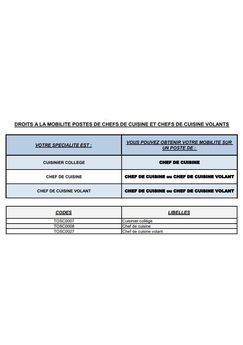 Objet : MOBILITE NOVEMBRE 2025 - CHEFS DE CUISINE ET CHEFS CUISINE VOLANTS