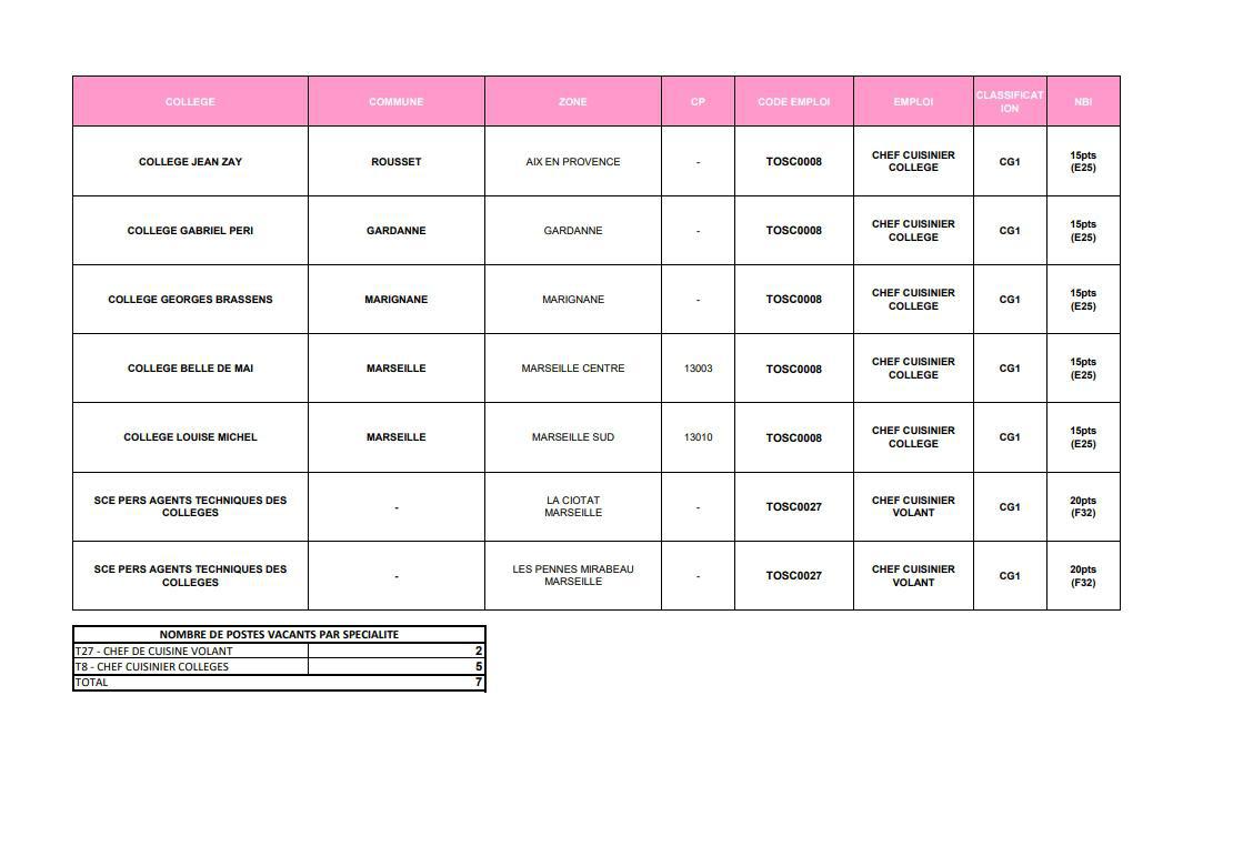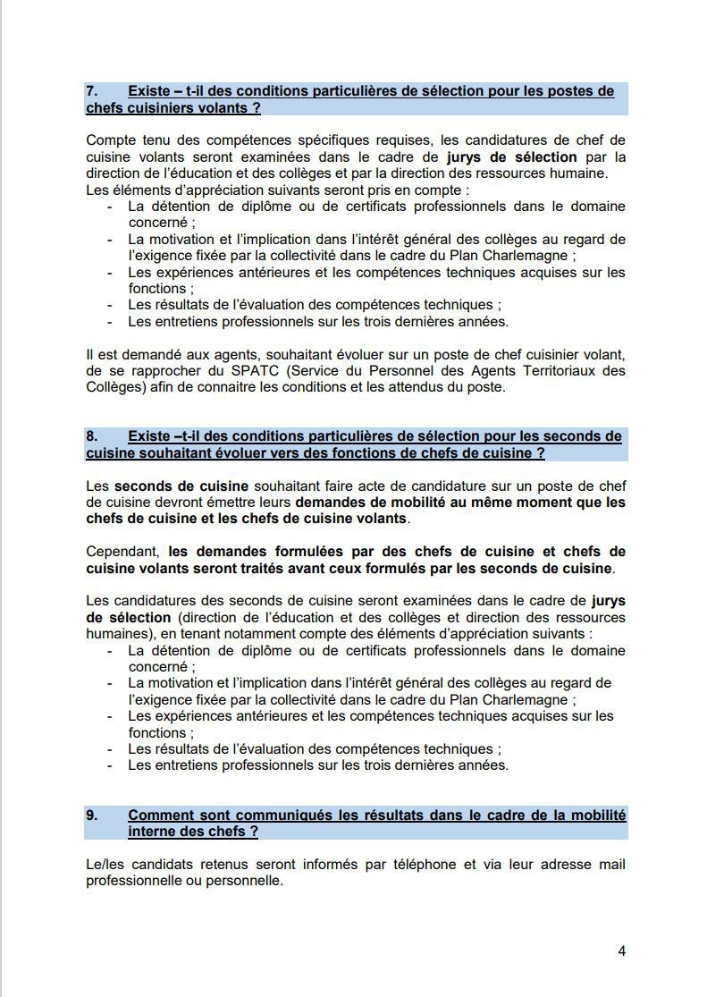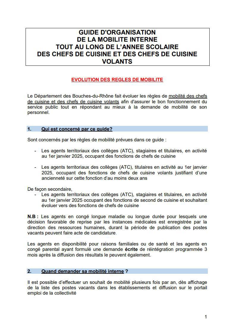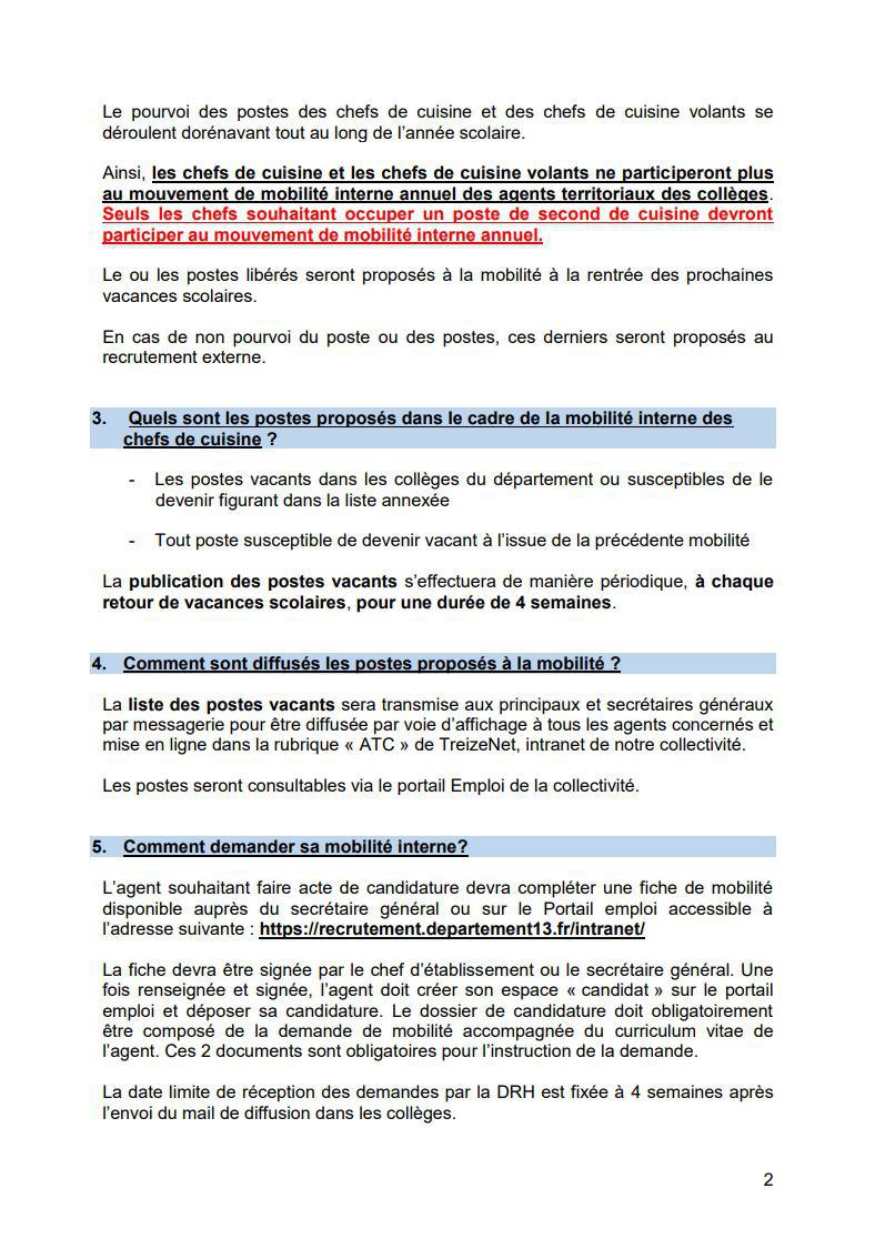Dans le cadre de la mobilité interne tout au long de l’année scolaire des postes de chefs de cuisine et de chefs de cuisine volants, je vous transmets ci-joint :