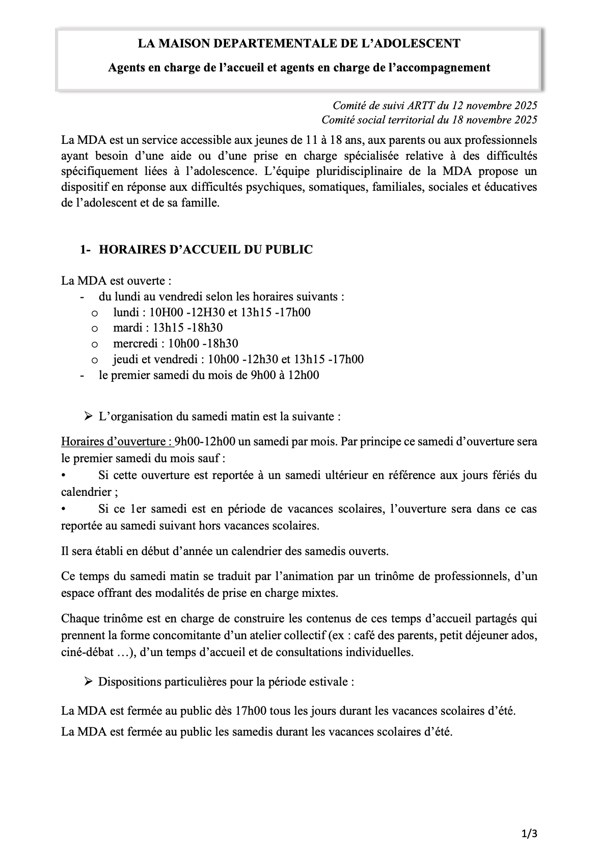 Comité de suivi ARTT du 12 novembre 2025 Comité social territorial du 18 novembre 2025