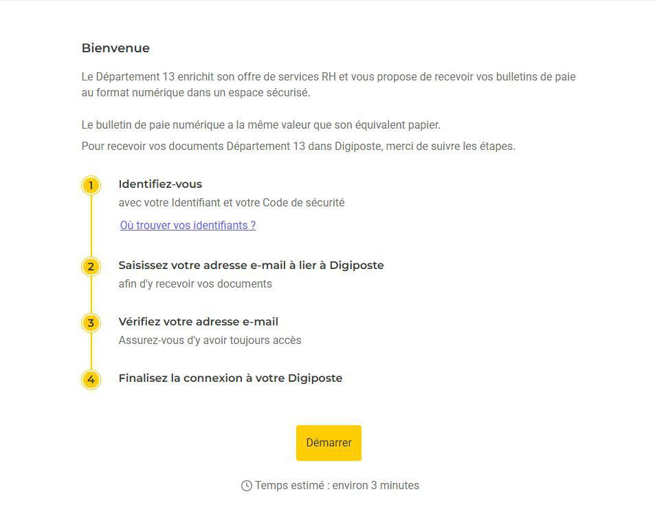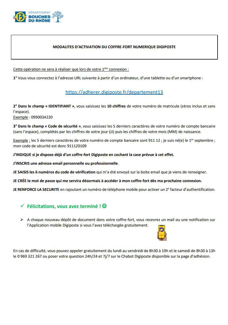 Département 13 vous a communiqué vos identifiants afin de recevoir vos bulletins de paie dans Digiposte.