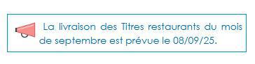 CD13 / La livraison des Titres restaurants du mois de septembre est prévue le 08/09/25.