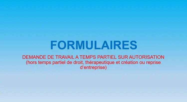 DEMANDE DE TRAVAIL A TEMPS PARTIEL SUR AUTORISATION (hors temps partiel de droit, thérapeutique et création ou reprise d’entreprise)