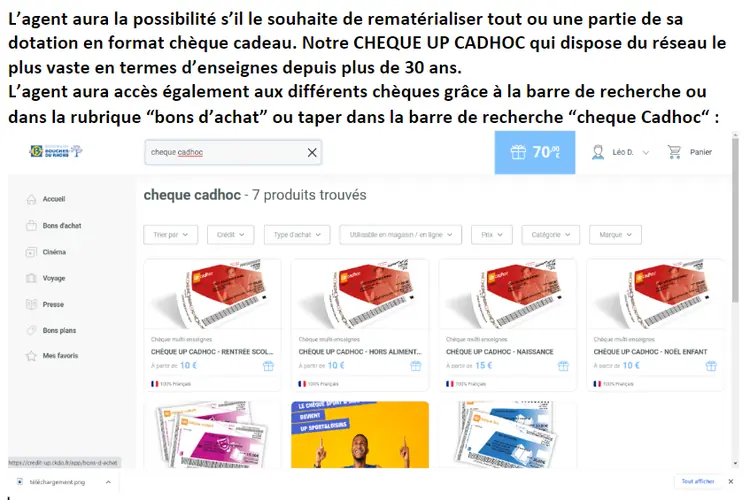 le Département a changé de prestataire depuis Août 2023. Les agents bénéficiant de bons d'achat à partir de Septembre 2023 devront se connecter dorénavant sur la plateforme de notre nouveau prestataire Upc'kdo. Chaque nouveau bénéficiaire recevra un courrier personnalisé pour le guider dans cette démarche.